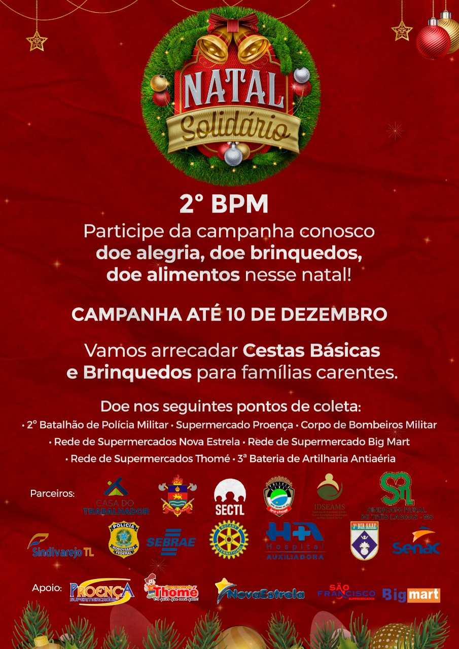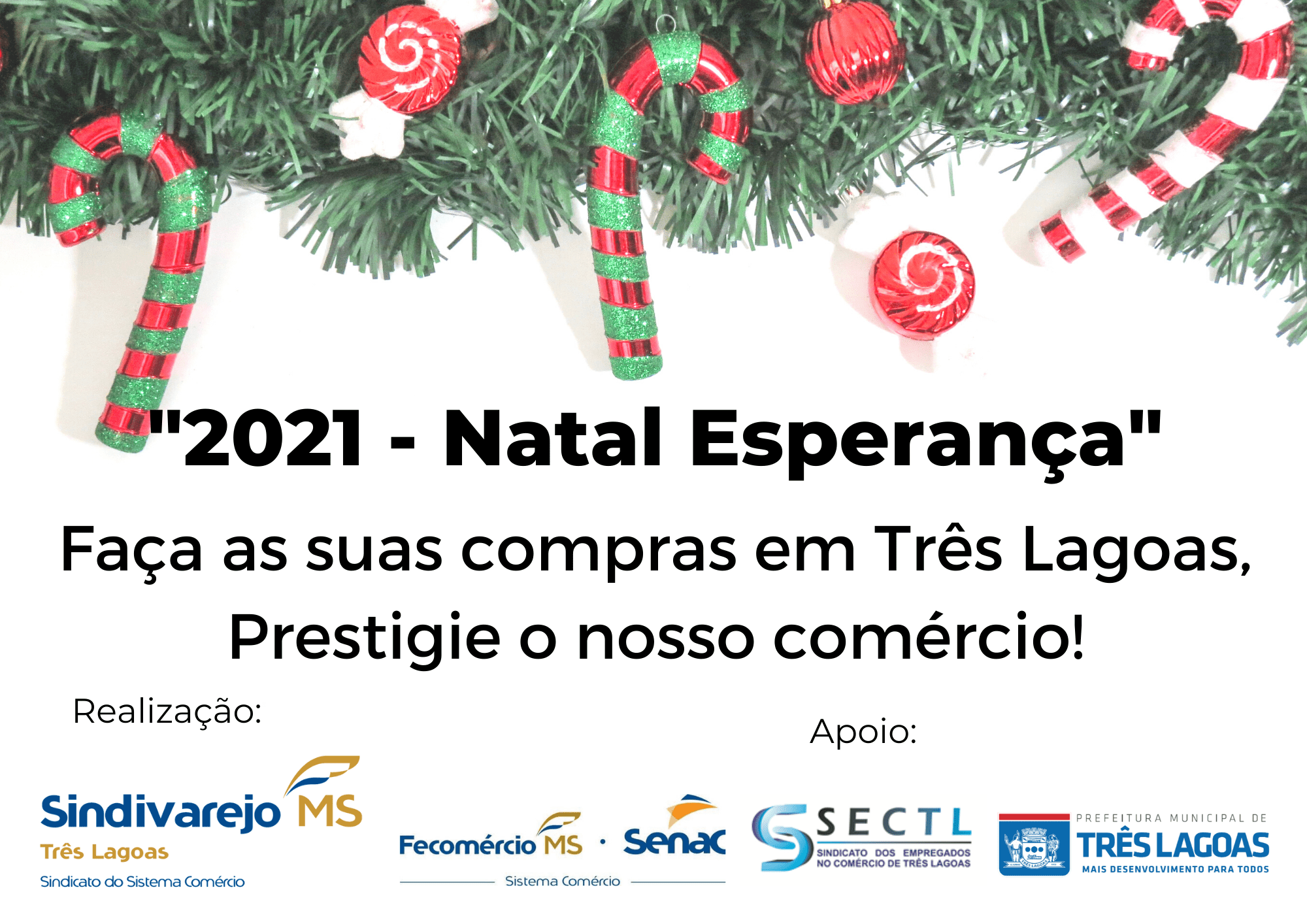 A campanha “2021-Natal Esperança” que está sendo feita a custo zero para os comerciantes de Três Lagoas, tem como objetivo atrair os consumidores, alavancando o comércio do município. E visa o arrecadamento de brinquedos e cestas básicas para a campanha “Natal Solidário” comandado pelo 2º Batalhão da Policia Militar de Três Lagoas.