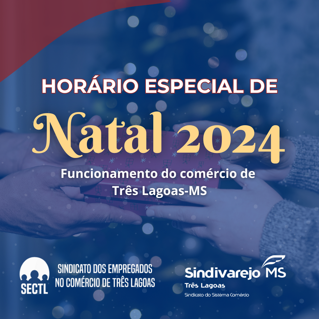 Comunicamos que o funcionamento do comércio no mês de dezembro de 2024, definido em reunião entre os Sindicatos, será como segue: