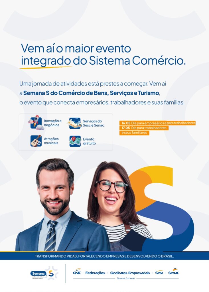 Nos dias 16 e 17 de maio, a capital Campo Grande recebe a Semana S do Comércio, o maior evento promovido pelo Sistema Comércio de Mato Grosso do Sul. Com uma programação intensa, o encontro será realizado no Senac Hub Academy e contará com oficinas práticas, palestras com nomes de destaque nacional e experiências voltadas à transformação dos negócios locais.