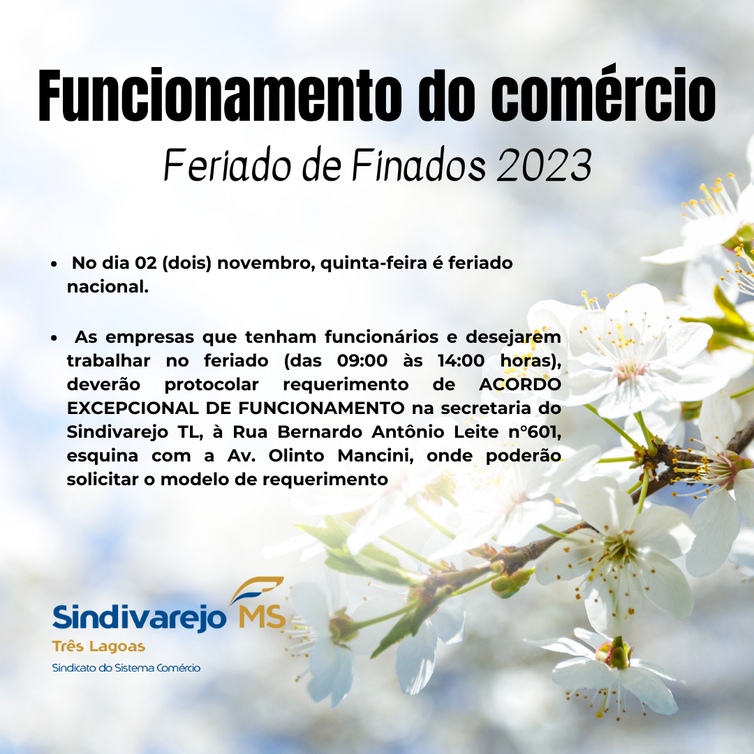 FUNCIONAMENTO DO COMÉRCIO FERIADO DE FINADOS 2023