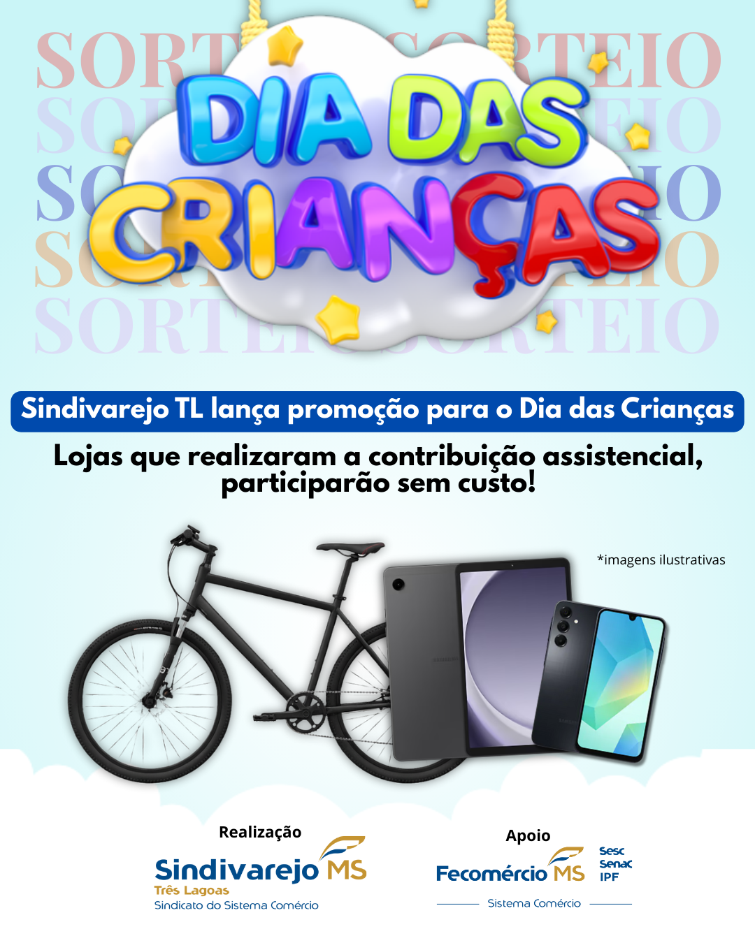 O Sindivarejo Três Lagoas, em parceria com a Fecomércio MS, anuncia a realização da Campanha do Dia das Crianças 2025, reforçando seu compromisso em fortalecer