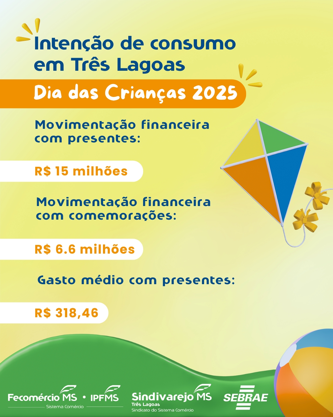 O IPFMS (Instituto de Pesquisa Fecomércio MS) divulgou a pesquisa para a o Dia das Crianças, intenções de consumo e comemorações dos residentes de Três